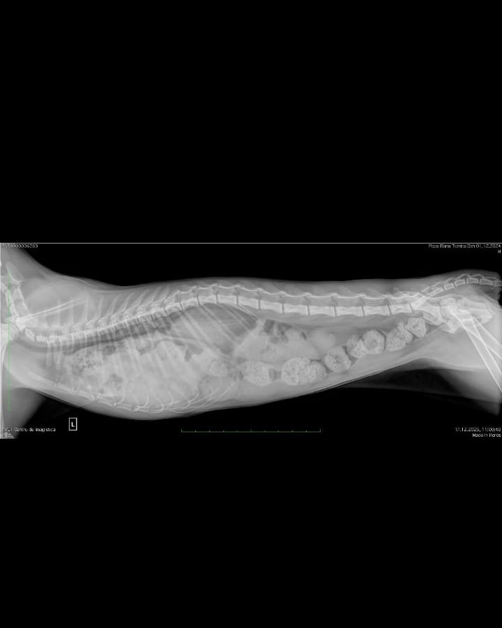 Este plin de materii fecale. Va intra de urgență în operație la Radius Vet.