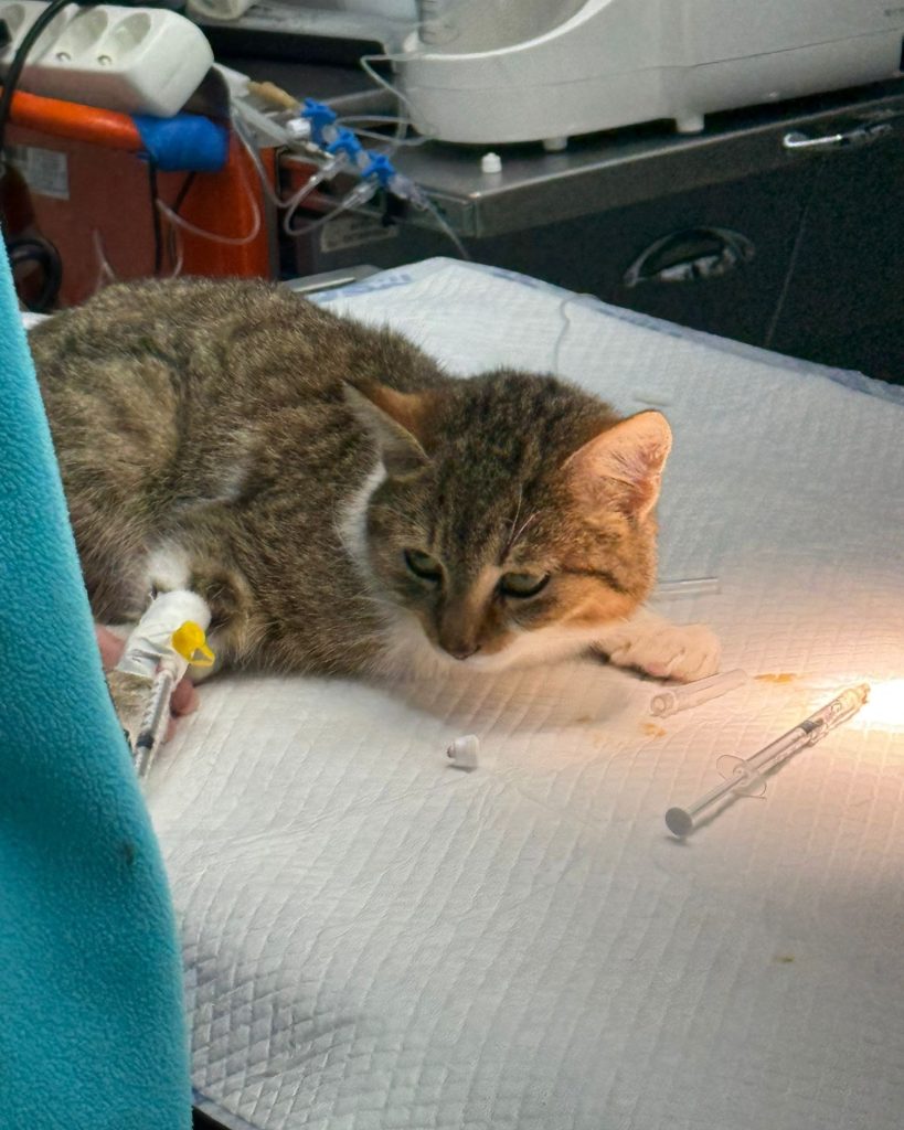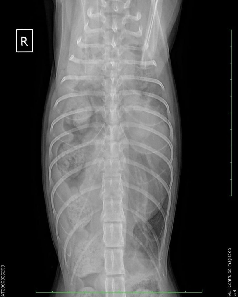 Așa cum se poate vedea pe radiografii, pisoiul are o hernie diafragmatică, organele sunt amestecate în cavitățile abdominală și toracică. Fără operație va muri.