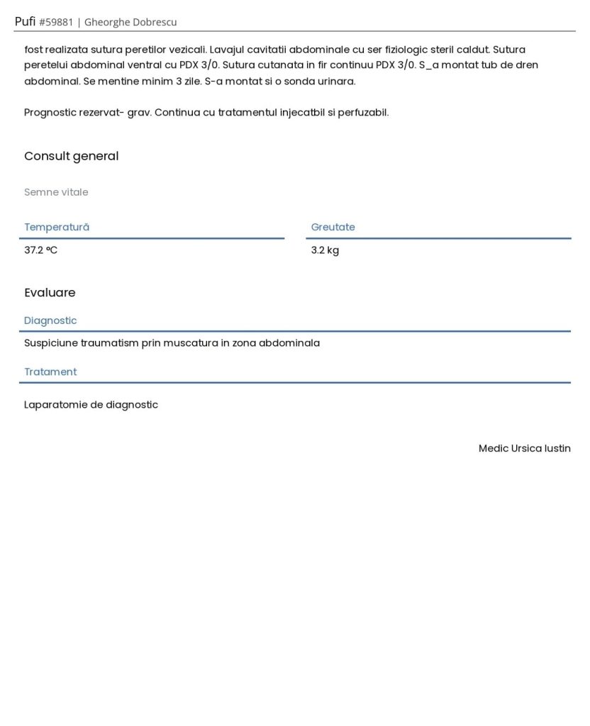 Situația a fost gravă, a trebuit să fie operat de urgență, altfel ar fi murit.